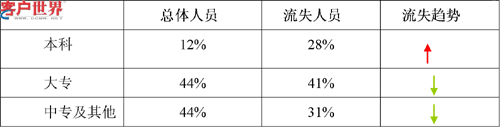 2.流失人員的學歷結(jié)構(gòu)比例