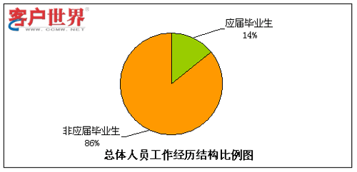 呼叫中心由于高壓力、24小時輪班等工作特性,有相當比例的流失是因為不適應工作環(huán)境而導致的,其中一個主要原因就是新入職員工想象中的工作環(huán)境和現(xiàn)實情況大相徑庭。而有呼叫中心工作經(jīng)驗的員工對于這點的適應性相對較強,因此我們對呼叫中心員工是否有行業(yè)經(jīng)歷方面的情況進行了統(tǒng)計分析。