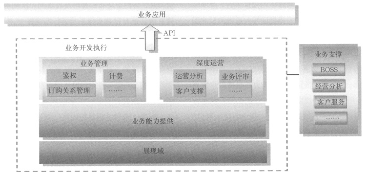 根據(jù)移動增值業(yè)務(wù)特征及業(yè)務(wù)部署、管理需求,目標(biāo)網(wǎng)絡(luò)架構(gòu)中將實(shí)現(xiàn)業(yè)務(wù)與控制的分離,劃分業(yè)務(wù)控制域和業(yè)務(wù)開發(fā)執(zhí)行域,并可開放公共接口實(shí)現(xiàn)各增值業(yè)務(wù)應(yīng)用無差別的接入、管理及功能調(diào)用,以方便的實(shí)現(xiàn)業(yè)務(wù)的融合、業(yè)務(wù)功能的靈活組合,更利于高效、簡便的實(shí)現(xiàn)業(yè)務(wù)部署、開發(fā)及運(yùn)營。