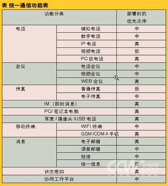 ”、“智能通信”和“統(tǒng)一溝通”等,盡管每個(gè)廠商所給出的定義均有些細(xì)微的差別,但總體來(lái)看,其核心內(nèi)容就是指將現(xiàn)在各種溝通方式進(jìn)行融合,目的是讓人們無(wú)論是在任何時(shí)間、任何地點(diǎn),都可以通過任何設(shè)備、任何網(wǎng)絡(luò)實(shí)現(xiàn)自由的溝通。目前常用的溝通方式有電話、傳真、短信、email、Web會(huì)議、視頻會(huì)議、語(yǔ)音信箱、IM軟件、協(xié)同工作平臺(tái)等等,這些溝通方式覆蓋了電信、IT和互聯(lián)網(wǎng)三大領(lǐng)域,因此統(tǒng)一通信是這三大領(lǐng)域逐步發(fā)展、自然融合的結(jié)果。