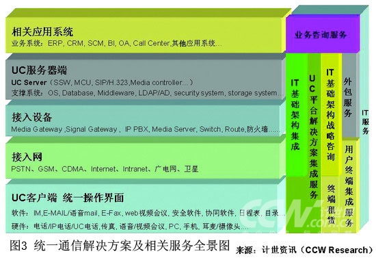 計(jì)世資訊(CCW Research)認(rèn)為,統(tǒng)一通信和我們通常所說(shuō)的統(tǒng)一通信解決方案是同一個(gè)意思,它不是特指一種新的技術(shù),而是指特定的解決方案和應(yīng)用,通過對(duì)各種溝通方式進(jìn)行融合,無(wú)論使用者在任何時(shí)候、任何地點(diǎn)、從任何設(shè)備上都能從一個(gè)“單一的界面”訪問其所需的應(yīng)用和信息,達(dá)到降低溝通成本和提高工作效率的目標(biāo)。