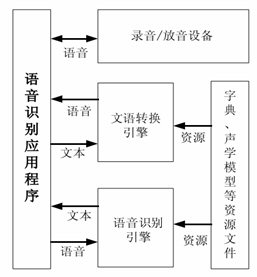 上圖示為Wanson ASR Chip1.0 的系統(tǒng)框圖。如圖所示,由系統(tǒng)所構(gòu)筑的語(yǔ)音識(shí) 別應(yīng)用程序和四部分相結(jié)合。對(duì)語(yǔ)音識(shí)別而言,將接收到的語(yǔ)音文件包通過(guò)錄音
