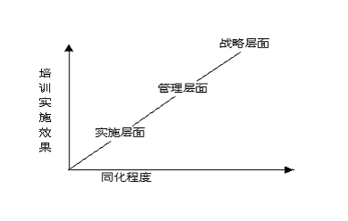 為了確保培訓(xùn)實(shí)施效果能達(dá)到預(yù)期的效果及水平即達(dá)到預(yù)期的認(rèn)識(shí)水平,來(lái)自于管理層的執(zhí)行力必不可少,任何一項(xiàng)培訓(xùn)工作如果不能自下而下的進(jìn)行“洗腦”即同化過(guò)程,很難保證培訓(xùn)效果。簡(jiǎn)言之,我們需要從戰(zhàn)略角度到管理層面直到實(shí)施層面的同化過(guò)程。