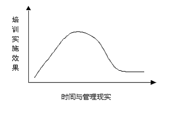 從圖一我們得知,在培訓(xùn)實(shí)施認(rèn)識(shí)之初,企業(yè)對(duì)于培訓(xùn)需求的同化程度越高,培訓(xùn)實(shí)施效果就會(huì)越好,反之若是我們的同化層面只停留在實(shí)施層面,得不到管理層、戰(zhàn)略層的同化支持自然培訓(xùn)效果不能長(zhǎng)久,只能達(dá)到一個(gè)短時(shí)間的定向認(rèn)識(shí),隨著時(shí)間與現(xiàn)實(shí)的變化,培訓(xùn)效果則會(huì)一蹶不振。(見圖二)