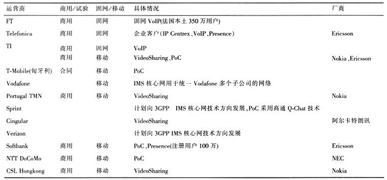 表1 國內外運營商IMS應用案例