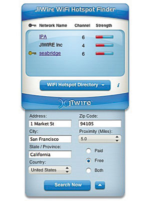 當(dāng)你需要進(jìn)行緊急無線接入時(shí),有一種方便、免費(fèi)能找到附近熱點(diǎn)的辦法。運(yùn)行這個(gè)程序并輸入你所在的位置,這個(gè)程序?qū)⒘谐龈浇乃袩狳c(diǎn)。它將幫你搜索到付費(fèi)的或免費(fèi)的熱點(diǎn),并保持程序數(shù)據(jù)庫(kù)的頻繁更新。