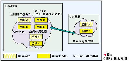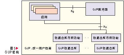 GUP中一個用戶相關(guān)的數(shù)據(jù)由多個數(shù)據(jù)組件構(gòu)成,每個組件又可以包含多個數(shù)據(jù)單元。在網(wǎng)絡(luò)中用戶數(shù)據(jù)每個數(shù)據(jù)組件只有一個主實例,但是可以有多個復制實例。用戶數(shù)據(jù)以組件為單元可以存放在不同的網(wǎng)絡(luò)實體中,應(yīng)用可以通過統(tǒng)一的訪問入口以標準接口訪問所有授權(quán)的數(shù)據(jù),這個入口功能由GUP