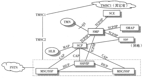 移動智能網(wǎng)應用部分(CAP)是遠程操作服務單元(ROSE),ROSE規(guī)程包括在TCAP成份子層中,并作為單位數(shù)據(jù)(UDT)放在SCCP中傳送。我國CAP是建立在以TCAP和SCCP為基礎的No.7信令網(wǎng)傳送的,CAP受限于SSP-SCP、SCP-IP之間的接口規(guī)范。