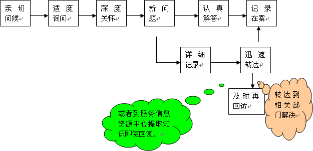 c、 客戶關(guān)系中心的客戶服務(wù)信息資源中心需要及時(shí)整理、收集、豐富客戶服務(wù)信息資源,為話務(wù)人員的咨詢解答和回訪慰問(wèn)提供支持。