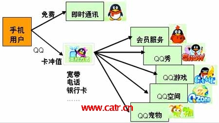 三、增值服務(wù)類商業(yè)模式。它承襲固定互聯(lián)網(wǎng)服務(wù)的商業(yè)模式,以終端用戶為付費(fèi)對象,通過移動互聯(lián)網(wǎng)服務(wù)所衍生的增值服務(wù)進(jìn)行收費(fèi)。以手機(jī)騰訊為例,手機(jī)QQ服務(wù)免費(fèi),但對虛擬物品銷售,包括QQ秀、寵物等進(jìn)行收費(fèi),并已成為主要收入來源,它是互聯(lián)網(wǎng)QQ業(yè)務(wù)盈利模式的順延和擴(kuò)展。