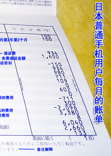 到底在購買各種套餐之后,用戶每個(gè)月使用多少錢呢?下面是一份普通的日本手機(jī)用戶每個(gè)月收到的賬單,通過這份賬單我們清晰看出3G資費(fèi)的構(gòu)成。在這里,我們清晰看到?jīng)]有漫游費(fèi),如果沒有折扣,該用戶至少需要付近3萬日元的費(fèi)用,實(shí)際上,最后用戶需要繳納的費(fèi)用是6064日元,其中還包含了購買新款手機(jī)3380日元的費(fèi)用,實(shí)際上產(chǎn)生的話費(fèi)是2660日元。