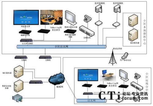 Communication Server)服務器,實現(xiàn)OnMeeting網(wǎng)真預約會議、數(shù)據(jù)協(xié)同以及即時通信功能,使得網(wǎng)真視頻會議與社區(qū)管理中原有辦公和監(jiān)控系統(tǒng)有機的融合,提供了高清晰、高效率、1:1真人大小圖像的視頻通信,使得社區(qū)安防會商實現(xiàn)了更有效的溝通。