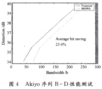 針對上節(jié)提出的重發(fā)機制和算法原理,為了評估方便,不失一般性,在實驗中假設最大重傳次數(shù)為1。從上文可知,允許重傳次數(shù)越多,則對同樣的終端接收失真而言,BEARQ機制從B-D性能來看也就會越差,而這里設計的重發(fā)機制相對于BEARQ的B-D性能提高也就越明顯。