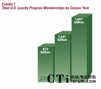 據(jù)權(quán)威的客戶忠誠度研究機構(gòu)COLLOQUY在2009出版的一份報告,2008年底,全美客戶忠誠度計劃的參與人次達(dá)到18.07億,平均每個美國家庭參與了14.1個忠誠度計劃,相較2006年底的13.41億參與人次,共增了了24.73%(連續(xù)兩年環(huán)比增長12%/年),而同期美國的GDP增長僅為2.2%。從這一點上看,美國企業(yè)對忠誠度營銷的熱情不減,盡管忠誠度營銷在美國已相當(dāng)成熟,但美國企業(yè)仍然把它當(dāng)作是營銷的重要工具。