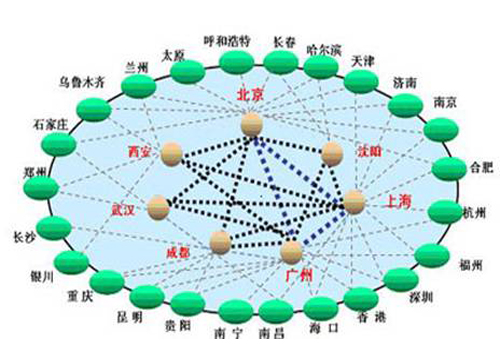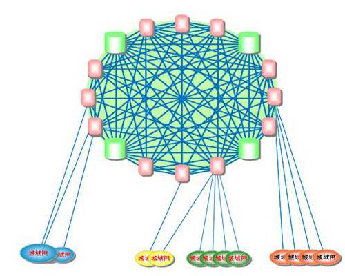 網(wǎng)絡扁平化概念就適時提出來了,F(xiàn)在,網(wǎng)絡扁平化已經(jīng)是運營商網(wǎng)絡建設的主要指導思想了。特別是中國聯(lián)通,由于歷史原因造成的骨干網(wǎng)節(jié)點并不夠多導致其南北方網(wǎng)絡品質存在一定差異。而扁平化后能很好的解決此問題。下圖為網(wǎng)絡扁平化示意圖。