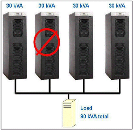 圖:即使UPS因技術(shù)問(wèn)題或維護(hù)要求而關(guān)閉,N+1供電體系結(jié)構(gòu)仍能繼續(xù)工作