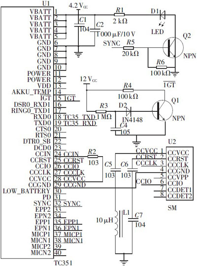 的數(shù)據(jù)接口通過AT命令可以雙向傳輸指令和數(shù)據(jù),可選波特率為300b/s~115kb/s,自動(dòng)波特率為1.2kb/s~115kb/s;支持TEXT和PDU格式的SMS,可通過AT命令或關(guān)斷信號(hào)實(shí)現(xiàn)重啟和故障修復(fù)。TC35I模塊主要由供電模塊、閃存、ZIF連接器、天線接口等6部分組成,作為TC35I的核心,基帶處理器主要處理GSM終端內(nèi)的語音和數(shù)據(jù)信息,并涵蓋了蜂窩射頻設(shè)備中的所有模擬和數(shù)字功能。