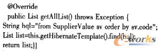 為簡化業(yè)務(wù)層代碼,使用Spring整合Hibernate的HibernateTemplate封裝Session和HQL的執(zhí)行。業(yè)務(wù)層的簡化示意代碼如下: