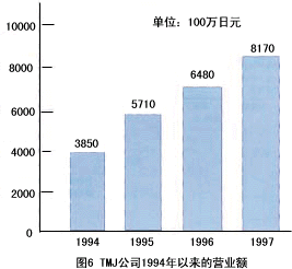 ——該公司成立于1992年,現(xiàn)在是日來第4大電話營銷專業(yè)公司。該公司是從原福武書店的電話中心獨立出來的。福武書店的”進研學習會”(類似于中國的函授大學)在日本全國擁有401萬會員。對這些會員的客戶服務目前占TMJ業(yè)務的50%,盡管TMJ成立時間不長。但由于積極引進先進技術(CTI,IVR,ACD,預撥號)和先進的管理方式,發(fā)展非常迅猛。1997年營業(yè)額達到81億7千萬日元,總席位有1,500個,外線數(shù)3,00O條,登錄業(yè)務代表達4,350人,該公司擁有6個呼叫中心(東京3個,大販、名古屋、岡山各1個),每月平均呼入電話63萬個,呼出電話60萬個。該公司的主要業(yè)務有:訂購、預約受理、促銷活動、銷售支持、客戶服務中心,其中面向消費者/面向企業(yè)的比例為4∶1。圖6為TMJ公司1994年以來的營業(yè)額。