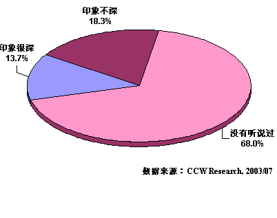 盡管2.5G的概念在各種媒體上被炒作得沸沸揚揚,然而在本次調(diào)查中卻發(fā)現(xiàn),大部分被訪者對2.5G仍然十分陌生。有將近七成的被訪者(68.0%)表示從來沒有聽說過2.5G通訊技術(shù)(業(yè)務(wù))。而在知道者中也有一半以上的人表示印象不深。2.5G這個炙手可熱的概念在用戶這里得到的卻是冷遇。