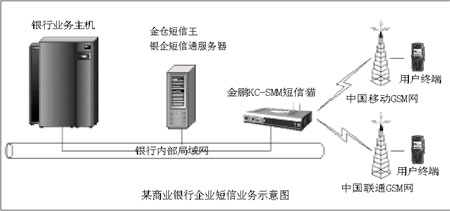 2004年7月,某地級(jí)市商業(yè)銀行采用了金鵬KC-SMM短信貓和“金倉(cāng)短信王銀企短信通解決方案”軟件搭建了企業(yè)級(jí)的短信服務(wù)體系。鑒于業(yè)務(wù)量并非很大,所以盡管整個(gè)商業(yè)銀行有近三百個(gè)辦公網(wǎng)點(diǎn),在設(shè)備上該商業(yè)銀行仍然只采用一套軟硬產(chǎn)品!敖瘗i的短信平臺(tái)產(chǎn)品目前在北方鋪開(kāi)的時(shí)間并不長(zhǎng),所以在價(jià)格上有一定的傾斜,我們商業(yè)銀行購(gòu)買(mǎi)的產(chǎn)品,價(jià)格比較便宜。”該商業(yè)銀行信息部某負(fù)責(zé)人說(shuō)。