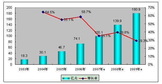在《2006-2007年中國增值服務提供商發(fā)展趨勢及市場機會研究報告》中顯示,2006年,我國WAP業(yè)務發(fā)展勢頭迅猛,市場總量由2005年的46.7億元增長到74.1萬元,從用戶數(shù)情況來看,2006年年底,WAP業(yè)務用戶總數(shù)達到4798.4萬戶。2007年,WAP業(yè)務仍然會有長足的發(fā)展,絕對增長將有所提高,需要新的技術(shù)和業(yè)務內(nèi)容,以創(chuàng)造新的增長,市場總量預計將超過100億元。
