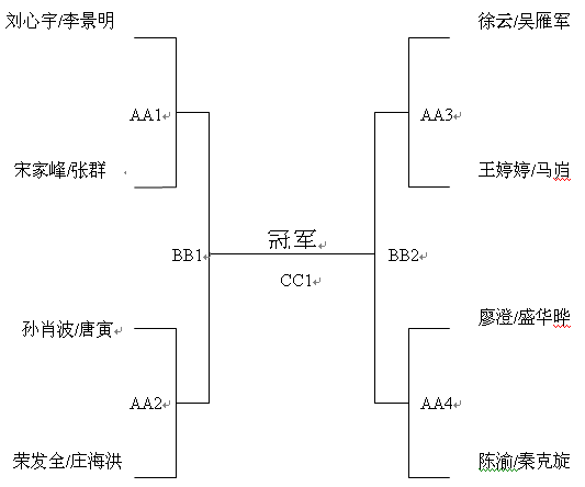| 比賽雙方 | AA1的勝方:AA2的勝方 | ||||