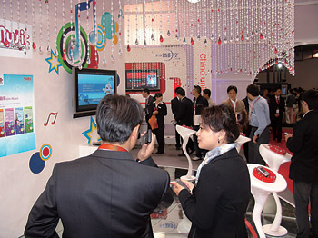 從手機音樂下載、手機電視等無線娛樂業(yè)務,到掌上股市、移動票務、手機郵箱等無線商務應用;從飛信、超信和WAP業(yè)務,到面向交通、農(nóng)業(yè)、金融等領域的移動信息化解決方案……在本屆通信展上,國內(nèi)移動運營商展示的移動增值業(yè)務可謂異彩紛呈,成為展會上最具吸引力的看點。