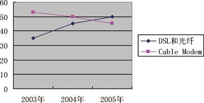 市場(chǎng)研究公司ParksAssociates最新發(fā)布的研究報(bào)告稱(chēng),2007年美國(guó)住宅用戶(hù)的寬帶網(wǎng)普及率將超過(guò)50%,美國(guó)住宅寬帶網(wǎng)用戶(hù)將超過(guò)6000萬(wàn),這些用戶(hù)都可以通過(guò)寬帶接入享受三種業(yè)務(wù)捆綁服務(wù)。由于電信公司的寬帶接入技術(shù)占優(yōu)勢(shì),因而在三種業(yè)務(wù)捆綁服務(wù)方面,電信公司占有競(jìng)爭(zhēng)優(yōu)勢(shì)。所以,凡是在兩家有競(jìng)爭(zhēng)的地方,有線電視公司都無(wú)例外地降低了價(jià)格,并失去了相當(dāng)一部分傳統(tǒng)市場(chǎng)。