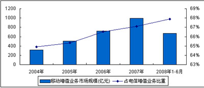 圖1 2008年1-6月中國移動(dòng)通信增值業(yè)務(wù)市場規(guī)模