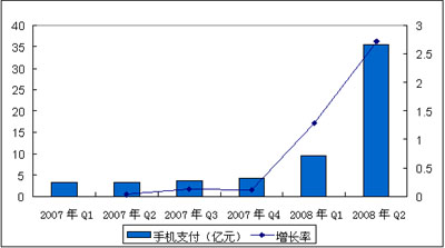 隨著手機(jī)支付業(yè)務(wù)的成熟以及產(chǎn)業(yè)鏈的完善,2008年第一季度,手機(jī)支付業(yè)務(wù)迎來了發(fā)展的一個(gè)高峰,在第二季度,由于賑災(zāi)募捐通道的打開,手機(jī)支付有了一個(gè)爆炸性的增長,在手機(jī)捐款中,手機(jī)支付的便利性和即時(shí)性優(yōu)點(diǎn)得到了極大展現(xiàn)。