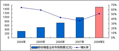圖5 2008年中國移動(dòng)通信增值業(yè)務(wù)市場總體規(guī)模預(yù)測