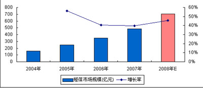 圖6 2008年中國短信市場規(guī)模預(yù)測