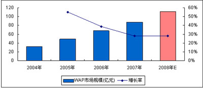 圖7 2008年中國WAP市場規(guī)模預(yù)測