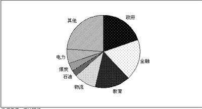圖2 2008年上半年中國行業(yè)電信應用市場行業(yè)分布情況