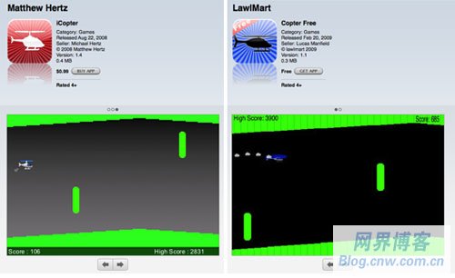 iCopter ,那么你也會喜歡免費(fèi)的 Copter ! 甚至還有與之對應(yīng)的另一種情況,開發(fā)者抄襲一個(gè)免費(fèi)應(yīng)用,然后把它做成付費(fèi)版——