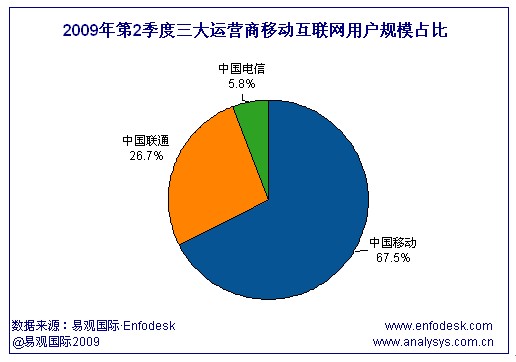 易觀國際(Analysys International)研究發(fā)現(xiàn),相比2009年第1季度,中國聯(lián)通、中國電信的移動互聯(lián)網(wǎng)用戶規(guī)模占比都有小幅增長。尤其是中國電信,在2009年5月17日正式推出WAP業(yè)務并輔以豐富應用,在某種程度上加速了中國電信移動互聯(lián)網(wǎng)用戶規(guī)模的小幅攀升。