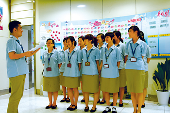 “玉不琢,不成器!彪m說目前社會的就業(yè)壓力源自于復(fù)雜的社會原因,可是在客服中心人力資源室的陳依群主管看來,有些還在于80后年輕人的自身原因!斑@些年我做招聘工作以來,看到了一些年輕人抱著希望進(jìn)來以后,因?yàn)槭懿涣藟毫τ滞顺隽。在就業(yè)壓力巨大的情況下,多是獨(dú)生子女的80后一代,還沒有完全樹立起正確的就業(yè)觀和務(wù)實(shí)的工作態(tài)度。我們的原則是,凡是進(jìn)入我們公司的員工和見習(xí)學(xué)生,都要經(jīng)歷嚴(yán)格的培訓(xùn),接受規(guī)范的管理,接受我們公司企業(yè)文化的熏陶。通過見習(xí),我們也發(fā)現(xiàn)了很多真正會發(fā)光的優(yōu)秀人才!
