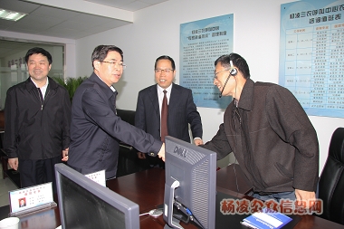 10月29日,陜西省長(zhǎng)袁純清,副省長(zhǎng)、楊凌示范區(qū)管委會(huì)主任姚引良視察呼叫中心,看望慰問坐席專家。