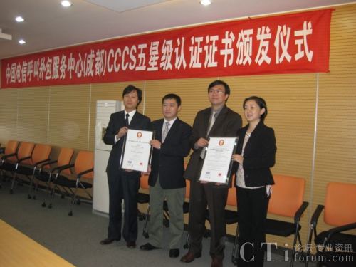 CTI論壇(ctiforum)11月5日消息: 日前,中國(guó)電信呼叫外包服務(wù)中心(成都)獲頒CCCS五星級(jí)客戶聯(lián)絡(luò)中心證書,成為國(guó)內(nèi)通過(guò)CCCS五星級(jí)認(rèn)證的首家外包呼叫中心。