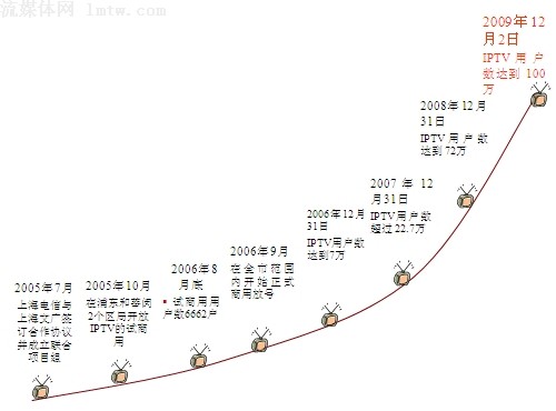 上海電信IPTV用戶12月3日突破百萬大關(guān),比原本預計的發(fā)展時間提前了近一個月。從2006年10月正式商用,發(fā)展到2009年12月,上海已經(jīng)成為全球最大的IPTV本地網(wǎng)并且是唯一用戶規(guī)模過百萬的城市。