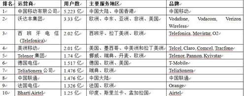 中移動(dòng)位居全球無(wú)線運(yùn)營(yíng)商排行榜第一