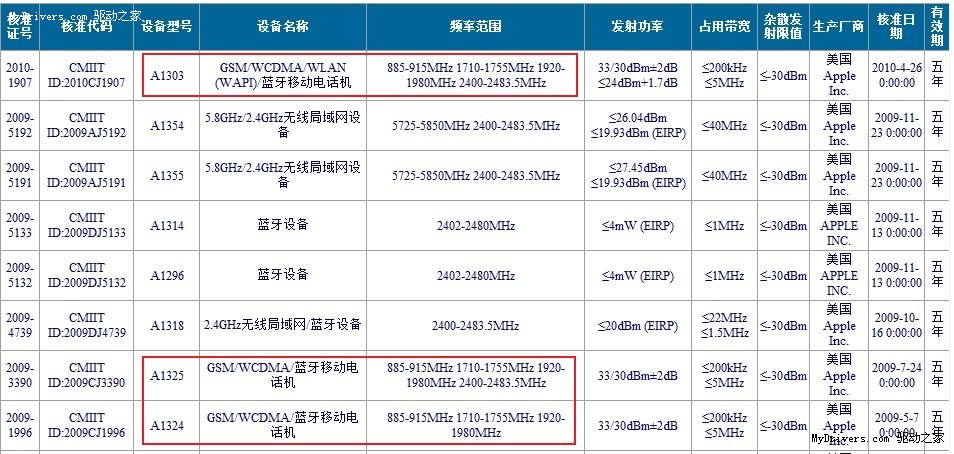該機型號為A1303,明顯區(qū)別于目前在售的A1324(iPhone 3G)和A1325(iPhone 3GS)。而新機在設(shè)備名稱一欄中的信息更是值得關(guān)注,在原有“GSM/WCDMA/藍(lán)牙移動電話機”的基礎(chǔ)上,A1303加入了WLAN(WAPI)功能,如傳言所說一樣提供了對中國標(biāo)準(zhǔn)WAPI的支持,因而也終于迎來了WiFi的回歸。