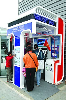 在世博園區(qū),除了在中國電信的綜合信息亭上查詢信息,還可以到電信的世博營業(yè)廳體驗快樂。玩玩魔屏,看看3D高清IPTV,還有移動極速寬帶網(wǎng)供你飛翔。