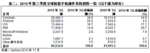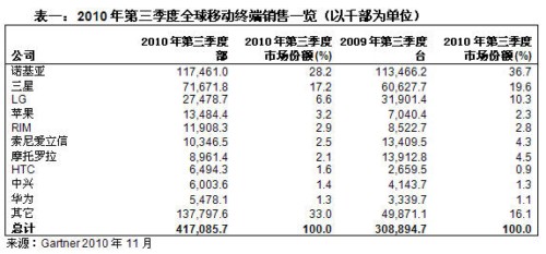 Gartner:2010年第三季度智能手機(jī)銷(xiāo)售增長(zhǎng)96%