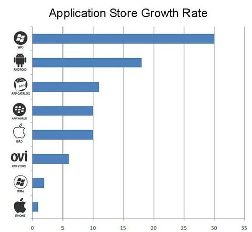 專注于App Store發(fā)展得研究者Distimo昨天公布了一份有關(guān)手機(jī)應(yīng)用程序商店的市場(chǎng)報(bào)告,報(bào)告顯示W(wǎng)indows Phone 7的增長速度高達(dá)30%。