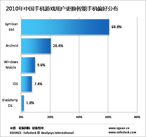 隨著終端和操作系統(tǒng)的變化,預(yù)計在 2011年Android平臺將成為眾多開發(fā)商所必須重視的市場,開發(fā)占比上將會逐步提高。
