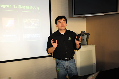 英偉達(dá)公司中國區(qū)公關(guān)經(jīng)理金洋先生展示天語和LG超級手機(jī)