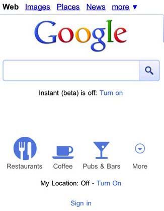 谷歌更新了移動(dòng)搜索用戶界面。用戶移動(dòng)設(shè)備屏幕的下方增添了諸如餐館、咖啡店、酒吧等圖標(biāo),并增添了一個(gè)“更多”的圖標(biāo)。如果用戶點(diǎn)擊這些圖標(biāo),可以查詢用戶所在地的各種商店的信息。而且這些商店的營業(yè)場(chǎng)所還將會(huì)在地圖上顯示出來。