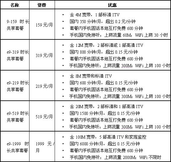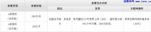 二、“我的e家”娛樂版套餐: